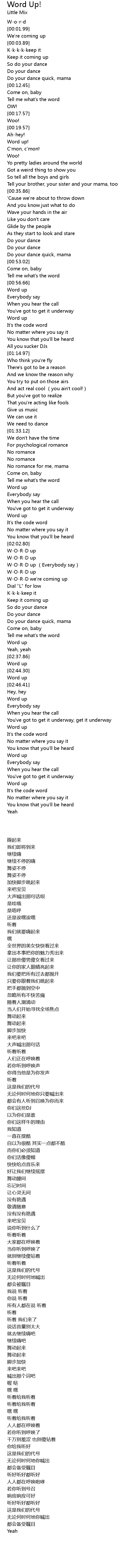 | [02:09.82] | W-O-R-D up (Everybody say) |