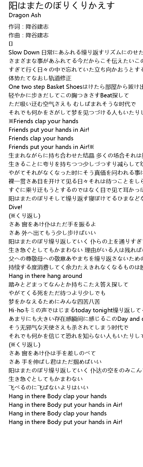 | 阳はまたのぼりそして缲り返す寝ぼけてるひまなどない今だ Dive! | |