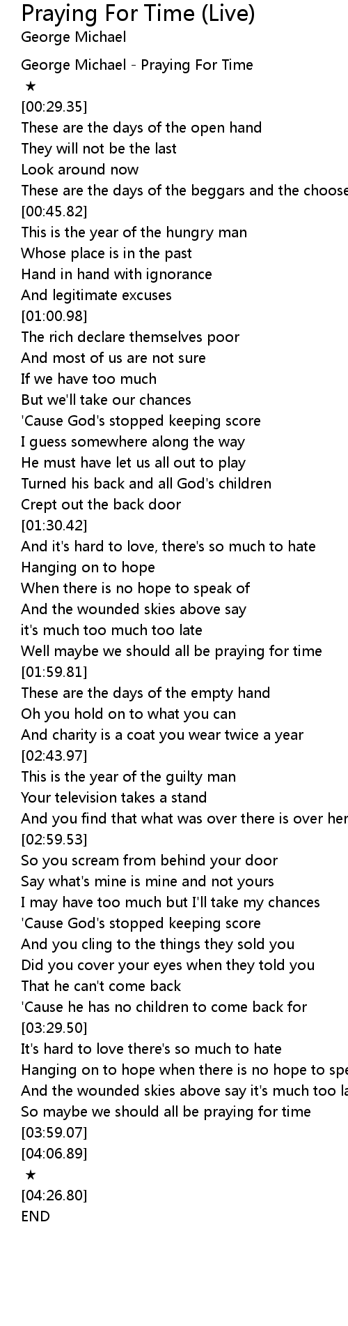 | [01:12.71] | 'Cause God's stopped keeping score |