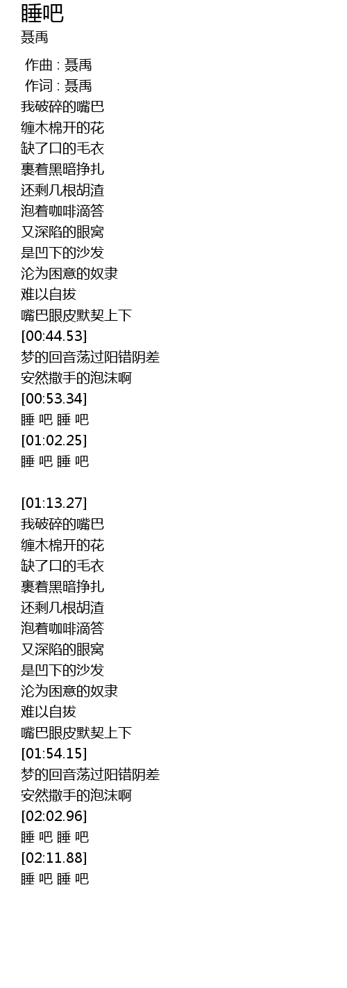 | [02:13.07] | 睡 吧 睡 吧 |