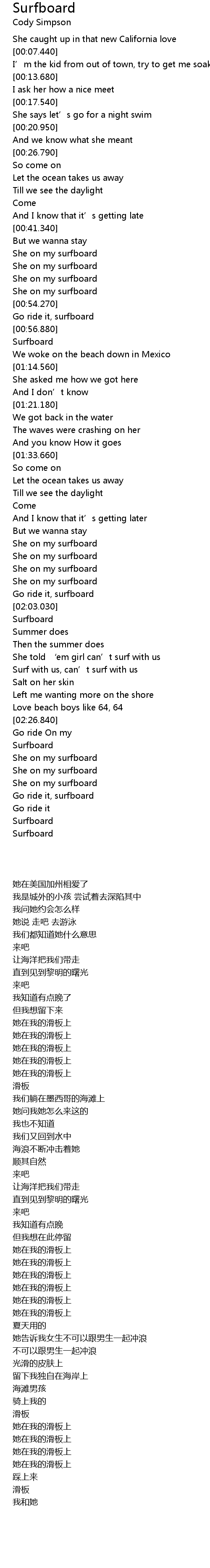 | [00:44.810] | She on my surfboard |