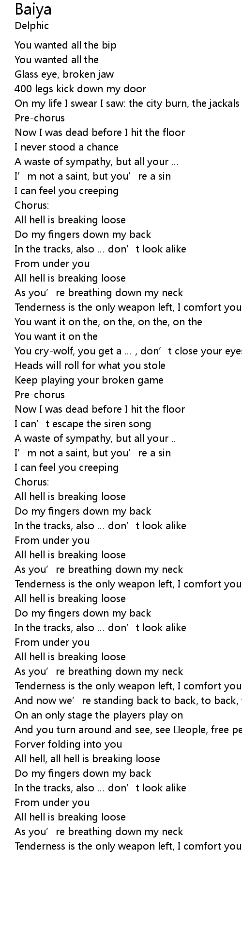 | All hell, all hell is breaking loose | |