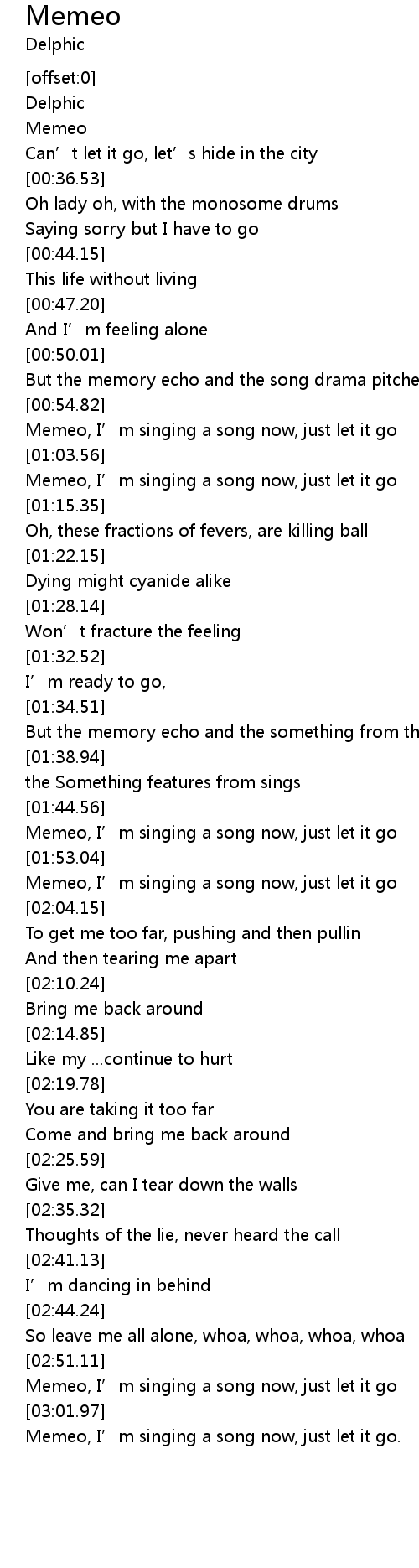 | [00:55.82] | Memeo, I’m singing a song now, just let it go |