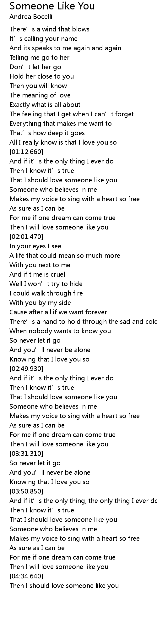 | [04:42.680] | Then I should love someone like you |