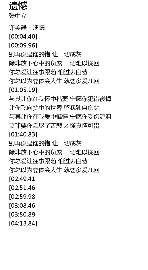 | [00:01.47] | 许美静 - 遗憾 |