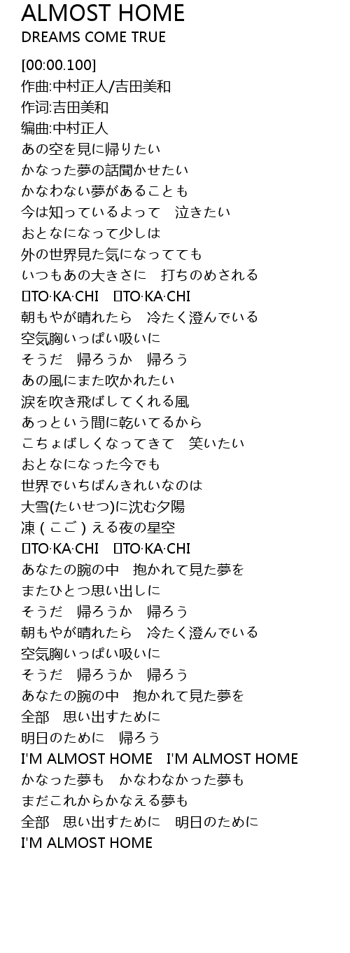 | [04:57.047] | I' M ALMOST HOME I' M ALMOST HOME |