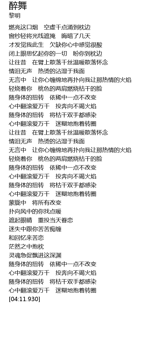 | [03:55.330] | 随身体的扭转 将枯干双手都感染 |