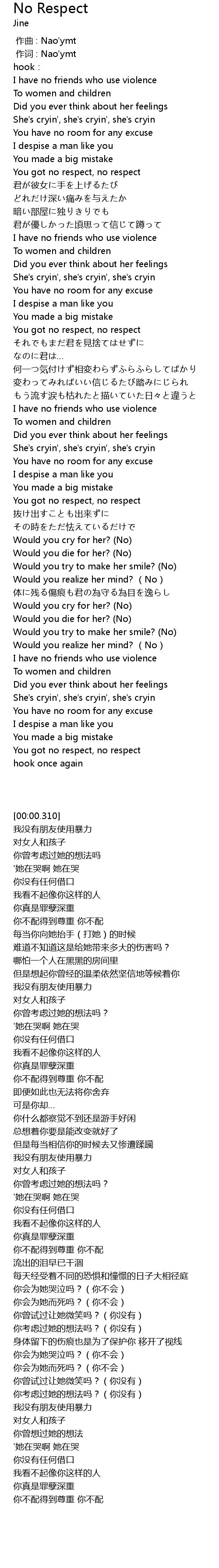 | [00:35.680] | 你不配得到尊重 你不配 |