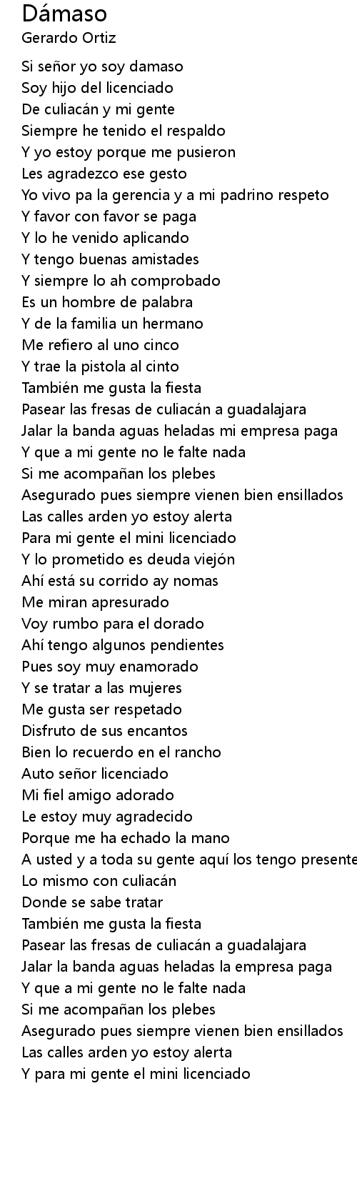 | [00:13.12] | Si señor yo soy damaso |