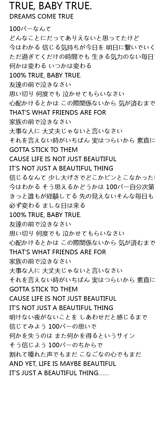 | 100 TRUE, BABY TRUE. | |