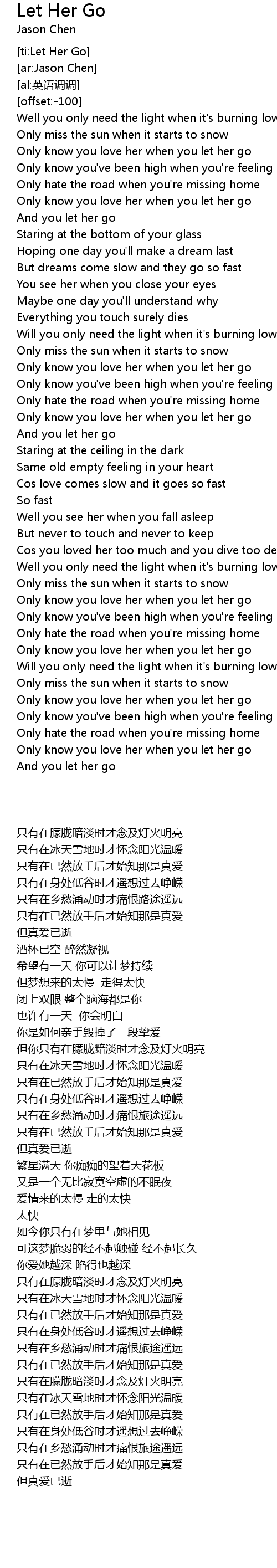 | [01:54.00] | Well you only need the light when it' s burning low |