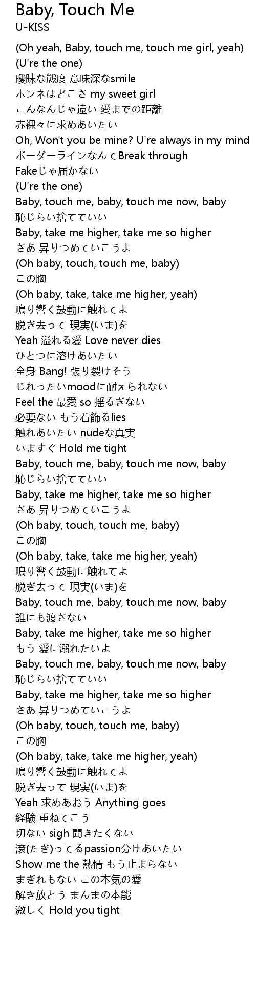 | (Oh yeah, Baby, touch me, touch me girl, yeah) | |