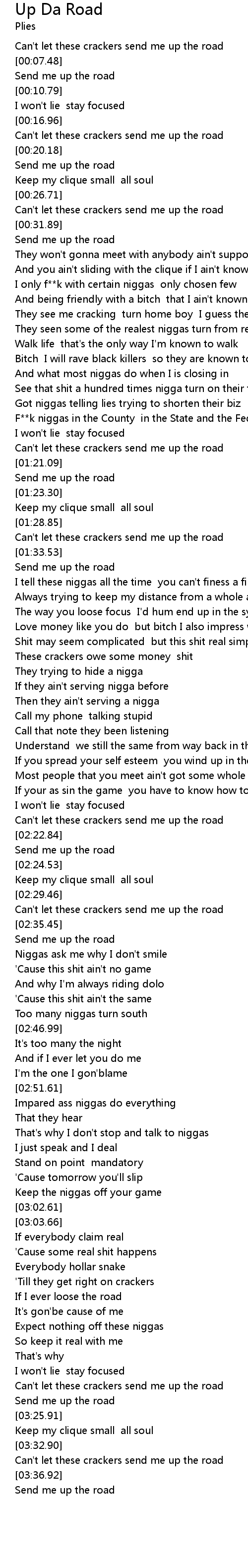 Can't let these crackers send me up the road |