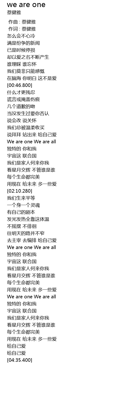 | [00:00.00] | 作曲 : 蔡健雅 |