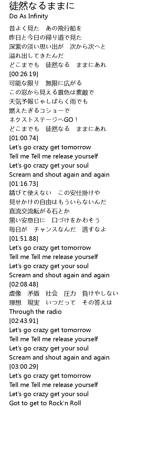 | [00:52.75] | どこまでも 徒然なる ままにあれ |