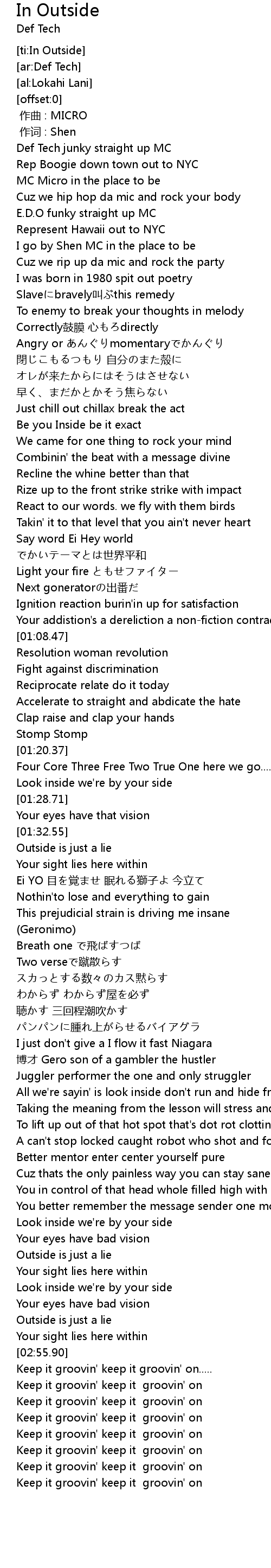 | [00:09.43] | Def Tech junky straight up MC |