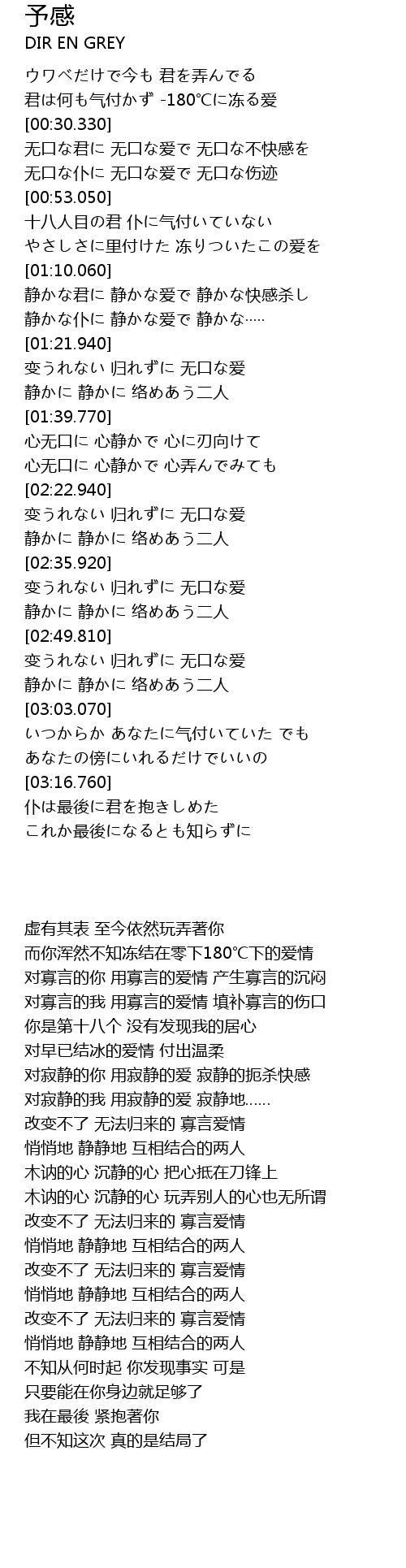 | [00:30.730] | 无口な君に 无口な爱で 无口な不快感を |