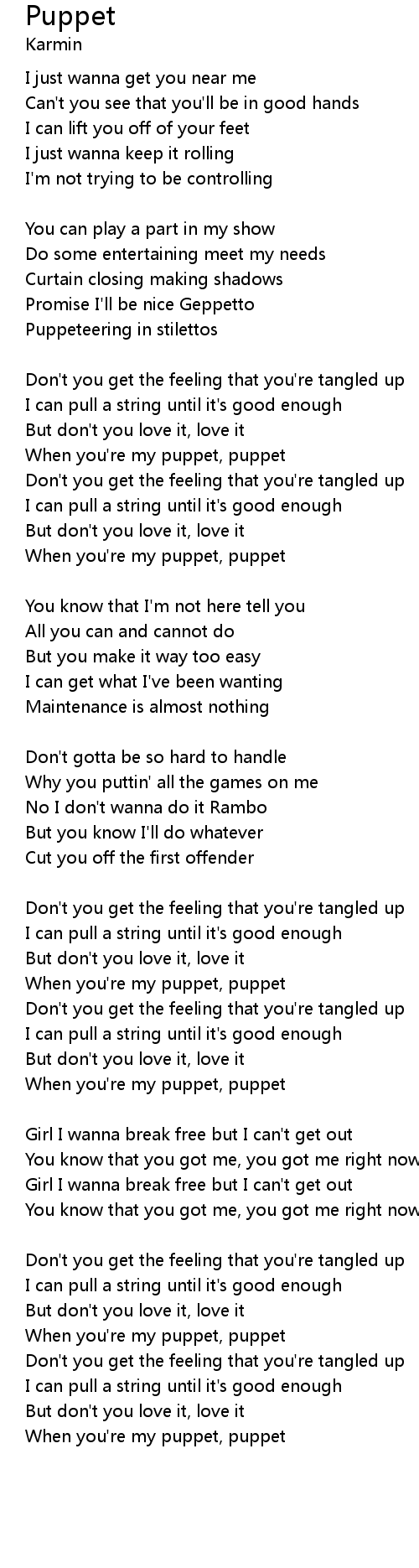 | When you're my puppet, puppet |