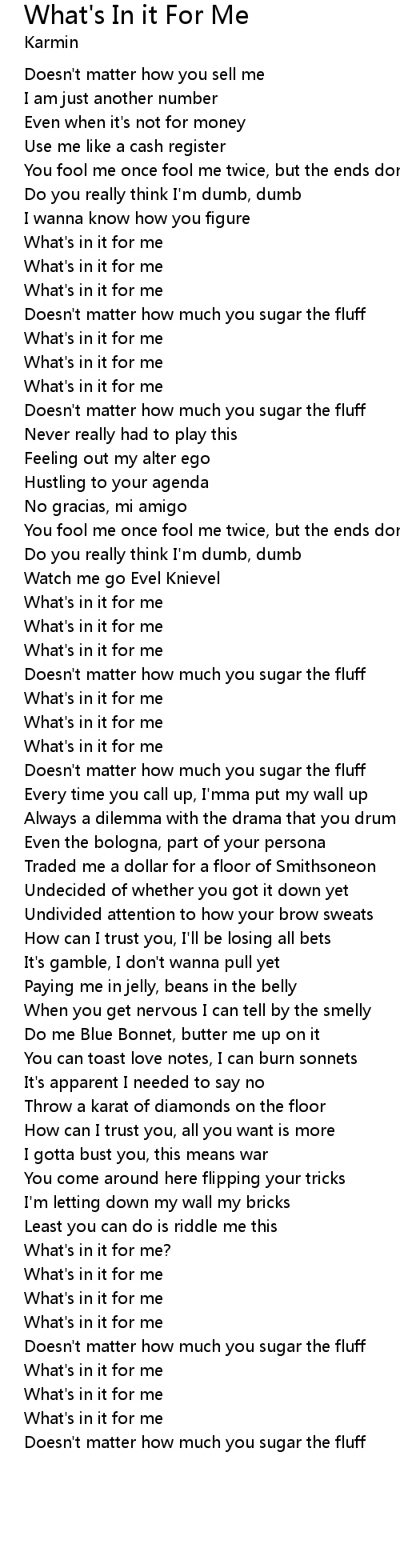 | How can I trust you, all you want is more | |