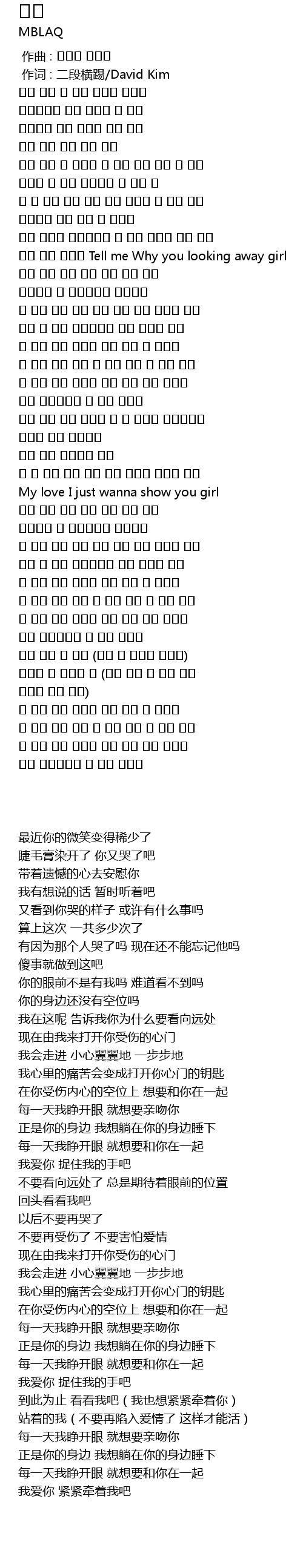 | [00:54.300] | 나는 여기 있는데 Tell me Why you looking away girl |