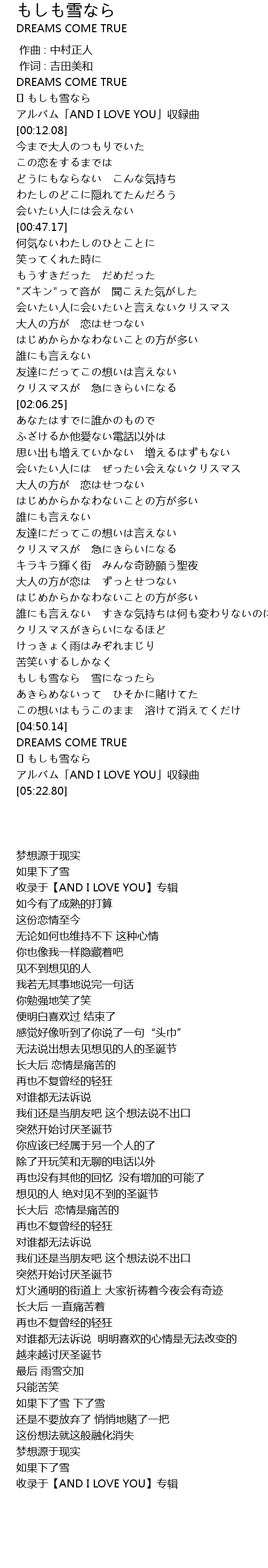 | [04:57.90] | アルバム「AND I LOVE YOU」収録曲 |