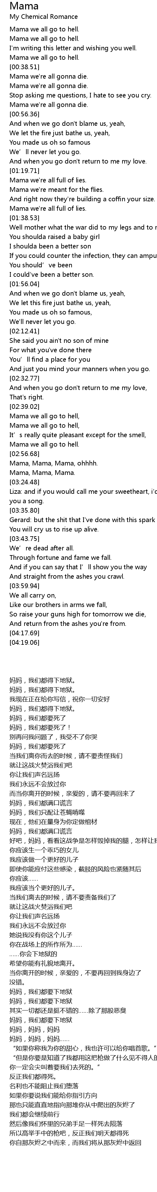 | [00:38.91] | Mama we' re all gonna die. |