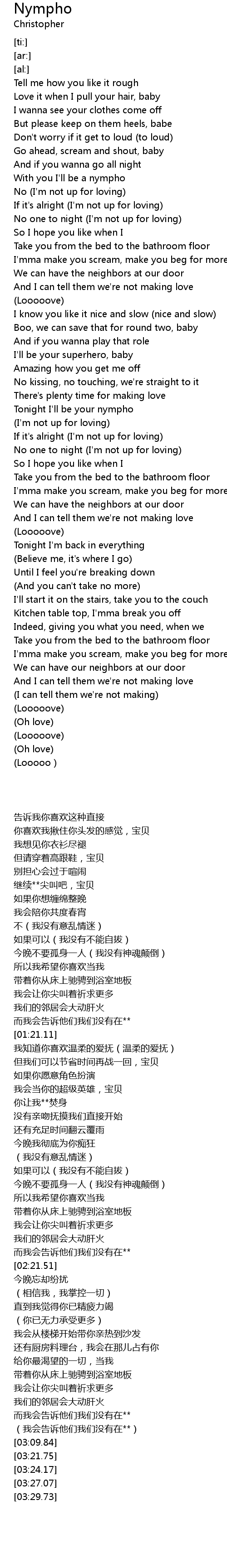 | [01:55.51] | Tonight I' ll be your nympho |