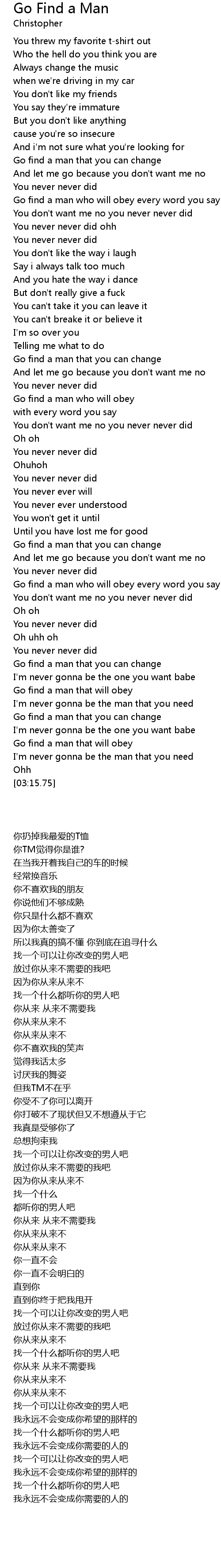 Go find a man who will obey every word you say |