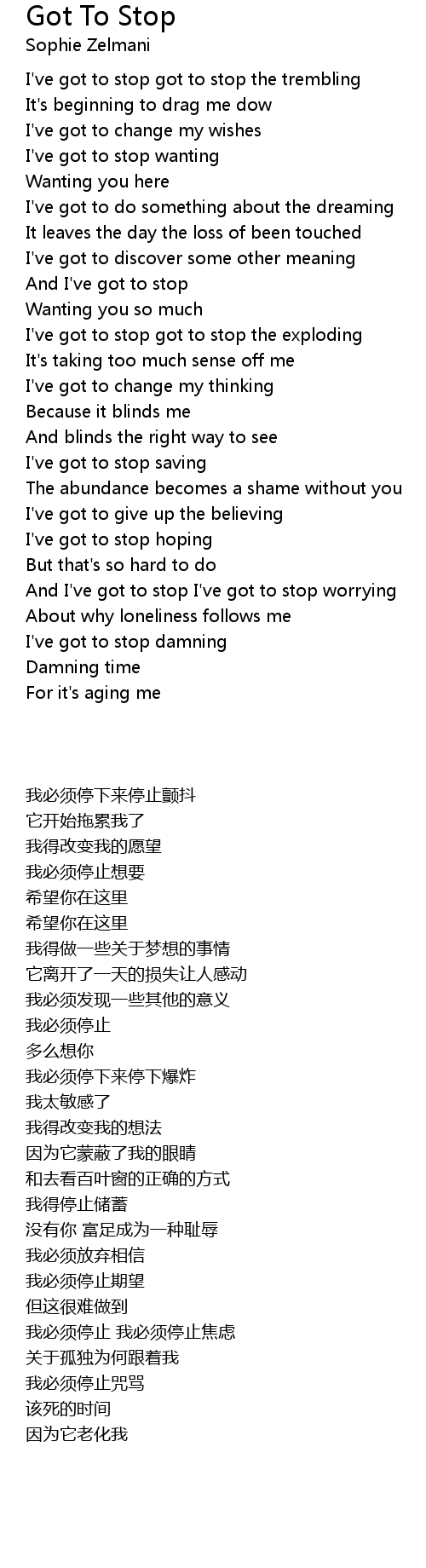 And I've got to stop I've got to stop worrying |