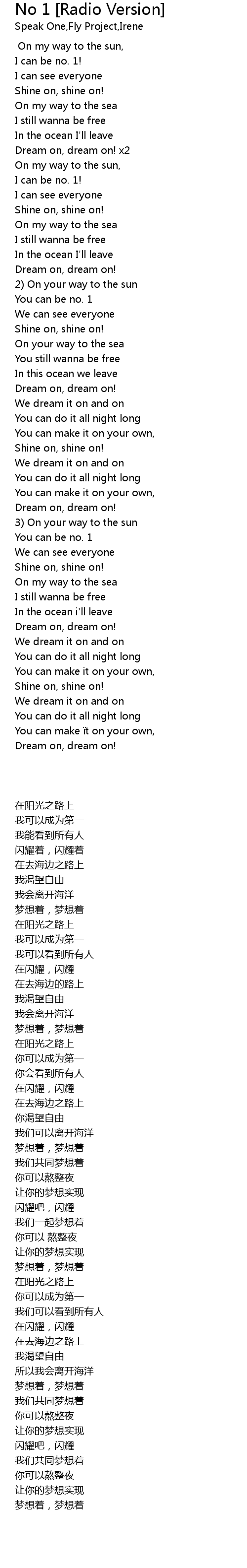 | [02:00.72] | You can be no. 1 |