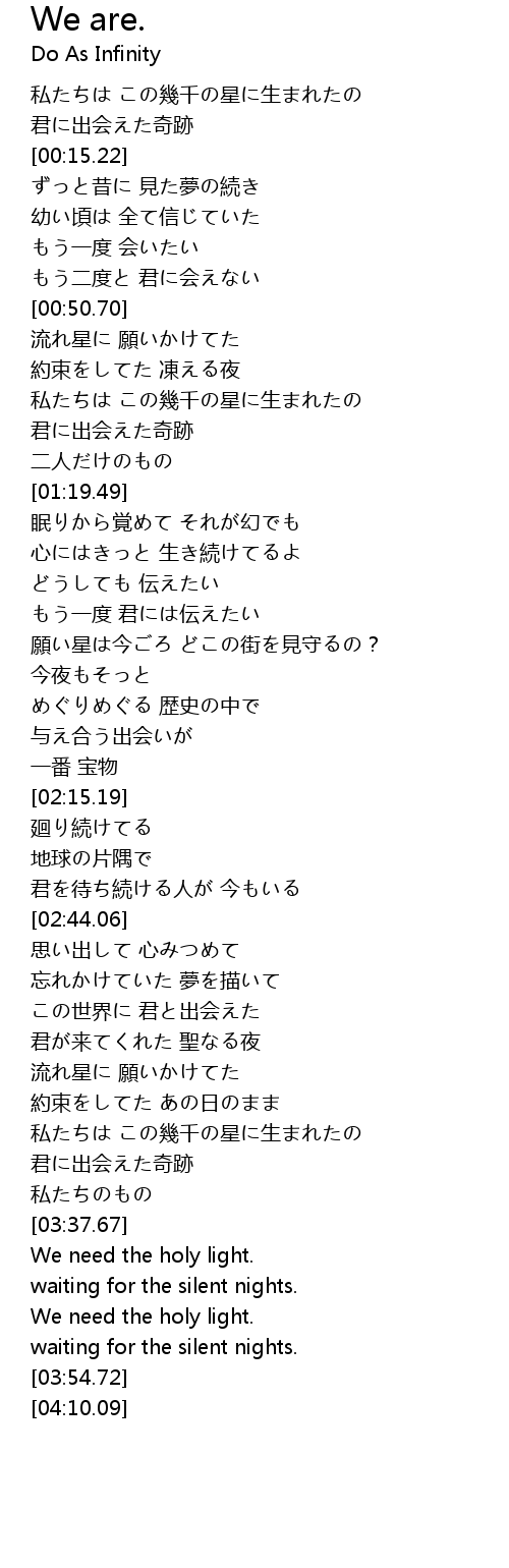 | [00:00.49] | 私たちは この幾千の星に生まれたの |