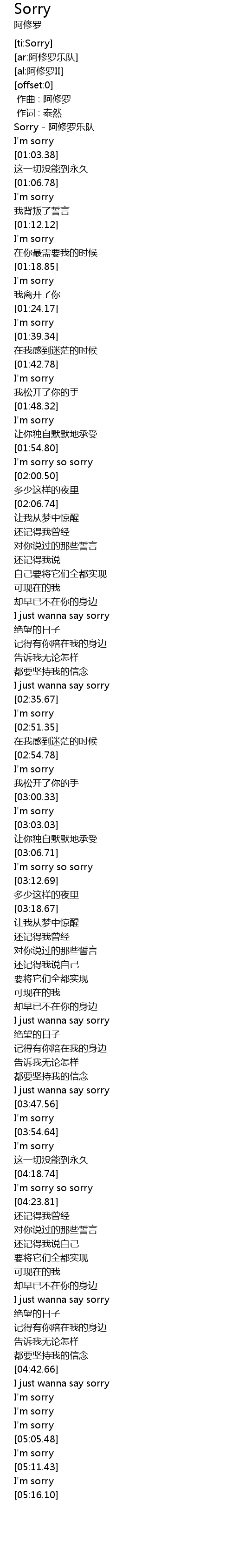 | [00:00.05] | Sorry - 阿修罗乐队 |