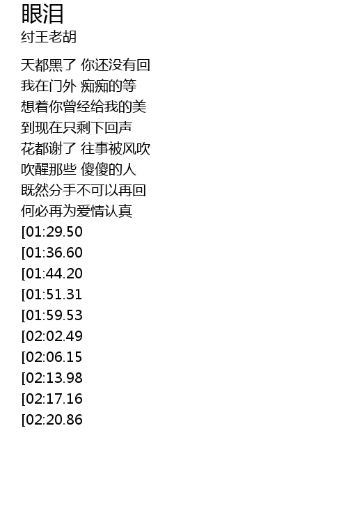 | [03:28.25][01:59.53] | 眼中没有流出一滴眼泪 |