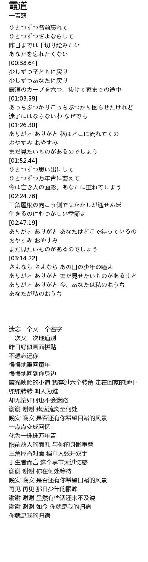 | [00:51.67] | 霞道のカーブを六つ、抜けて家までの途中 |