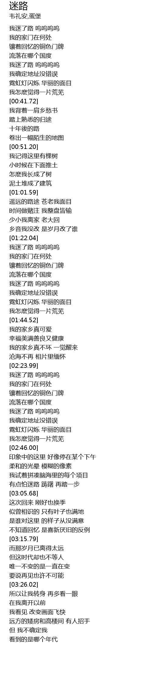 | [02:24.69] | 我迷了路 呜呜呜呜 |