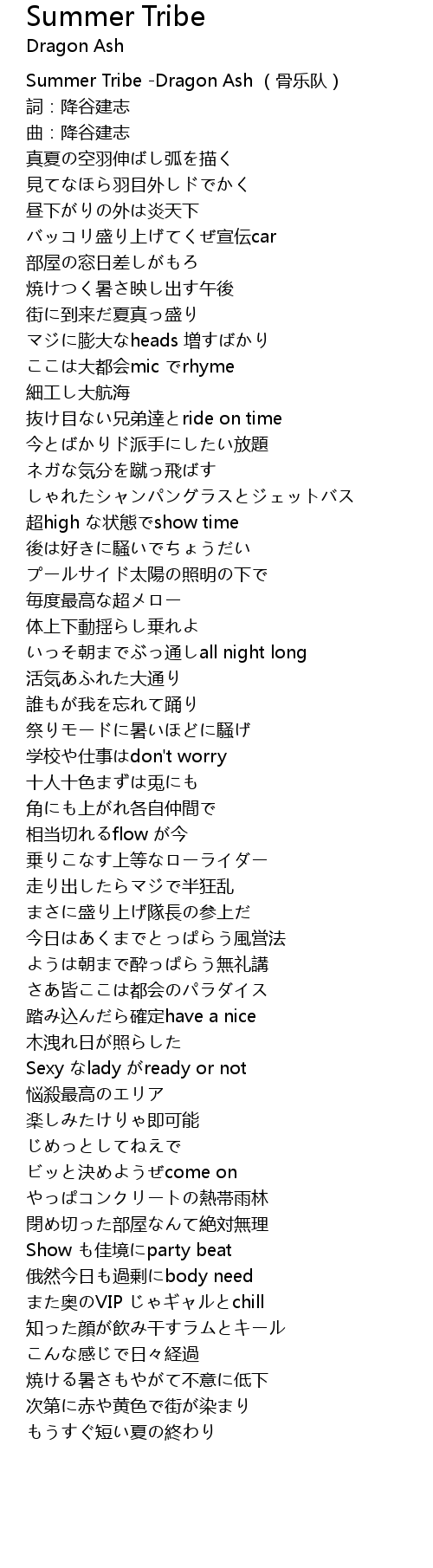 | [00:00.00] | Summer Tribe -Dragon Ash (骨乐队) |