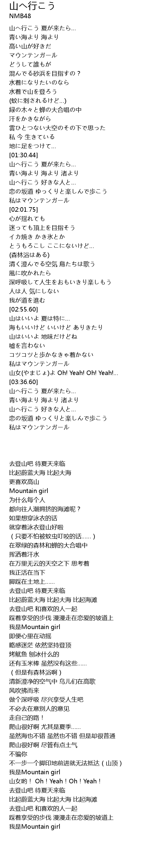| [04:08.43] | 去登山吧 和喜欢的人一起 |