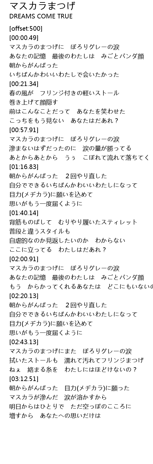 | [02:06.85] | あなたの記憶 最後のわたしは みごとパンダ顔 |