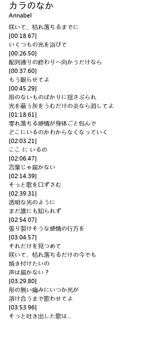 | [00:12.33] | 咲いて、枯れ落ちるまでに |