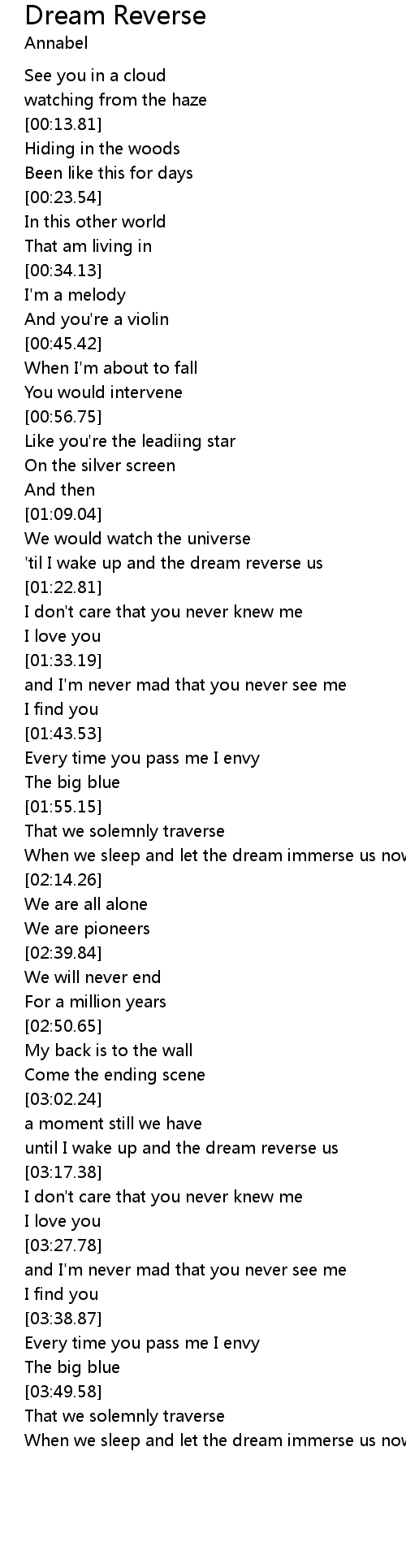 | [03:08.84] | until I wake up and the dream reverse us |