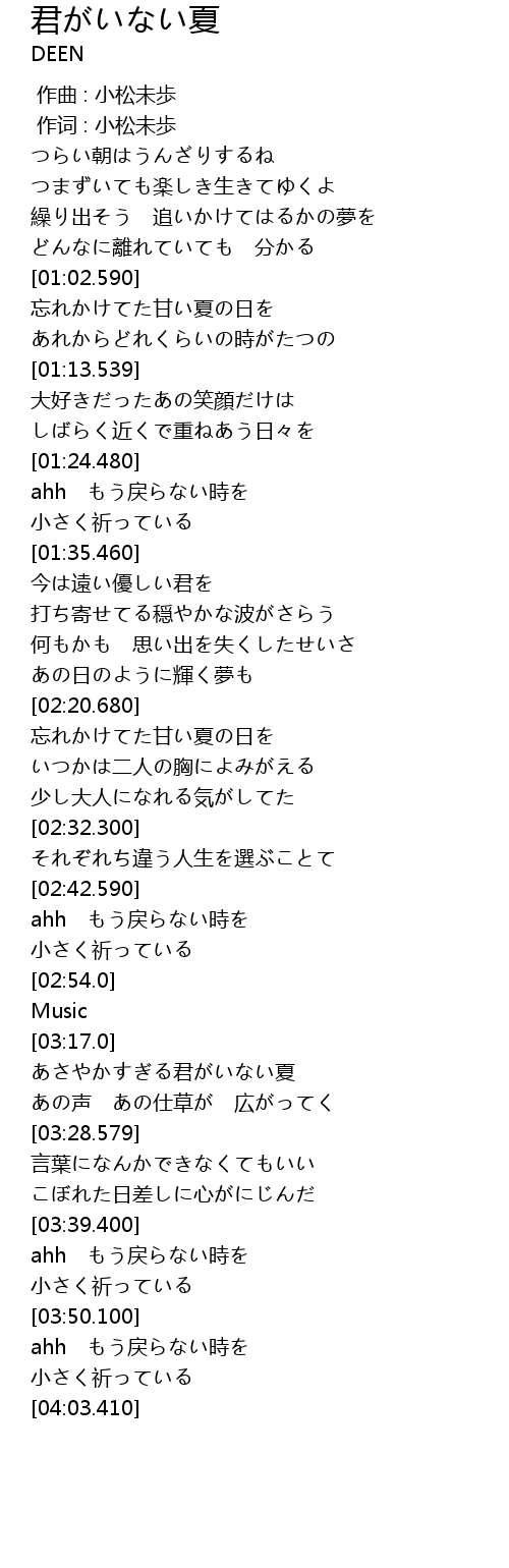 | [03:17.690] | あさやかすぎる君がいない夏 |