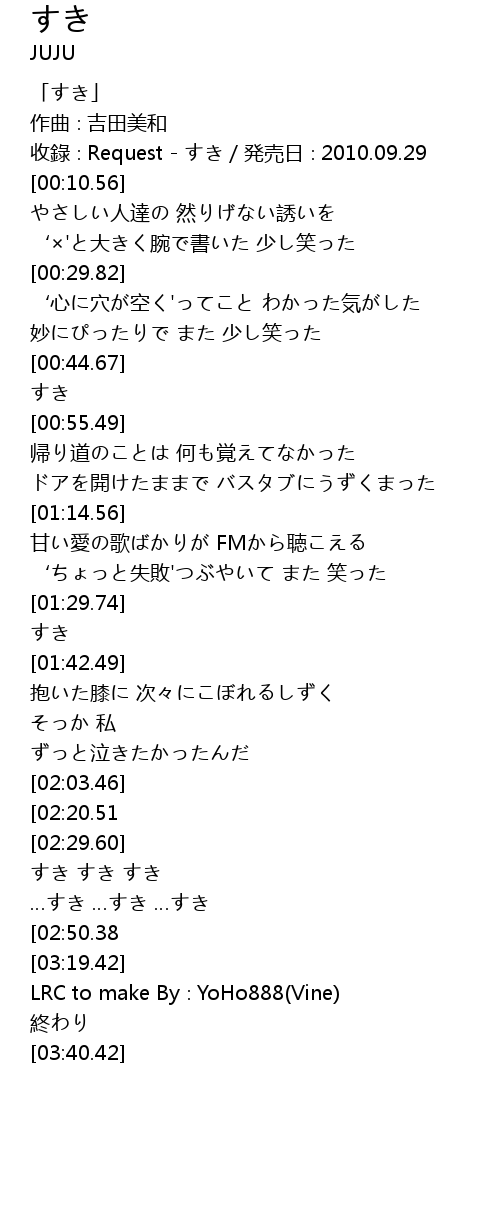 | [00:05.56] | 收錄∶Request - すき/発売日∶2010.09.29 |