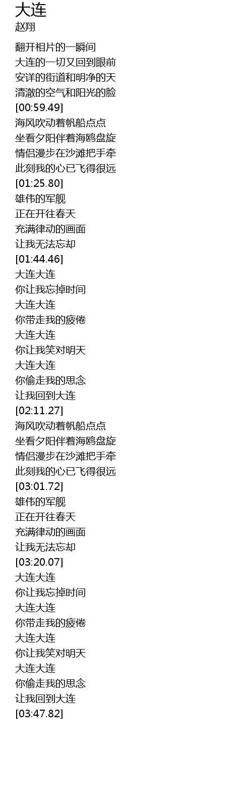 | [02:09.59] | ràng wǒ huí dào dà lián |