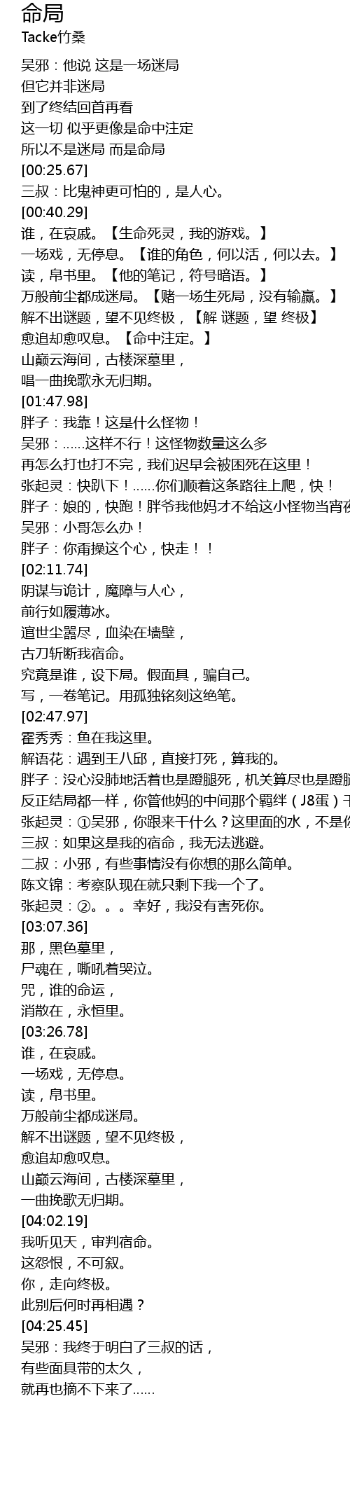 | [02:59.07] | 三叔:如果这是我的宿命,我无法逃避。 |