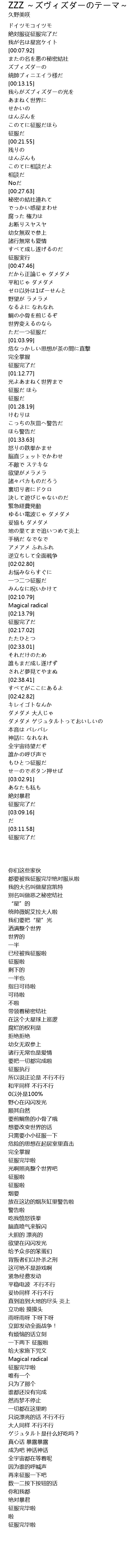 | 歌曲 | ZZZ ~ズヴィズダーのテーマ~ |