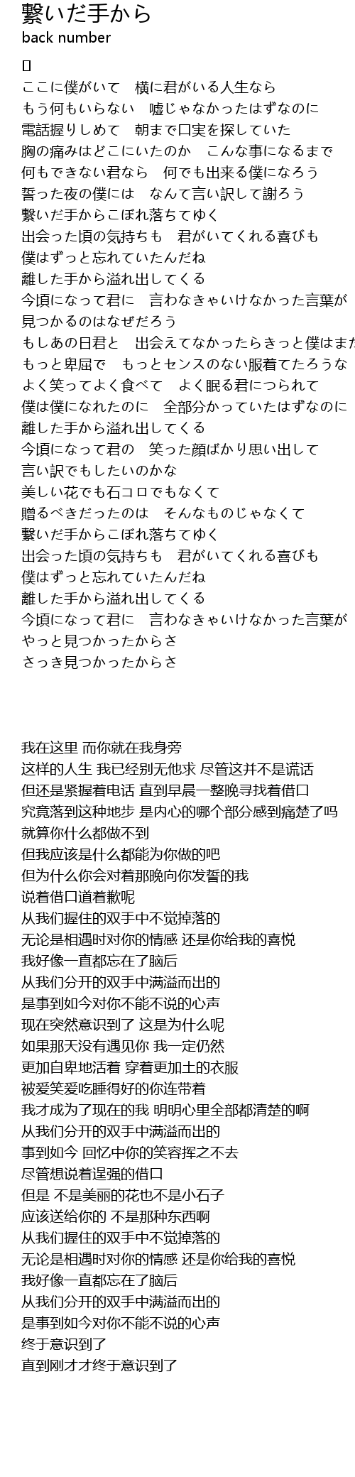 | [03:28.101] | 繋いだ手からこぼれ落ちてゆく |