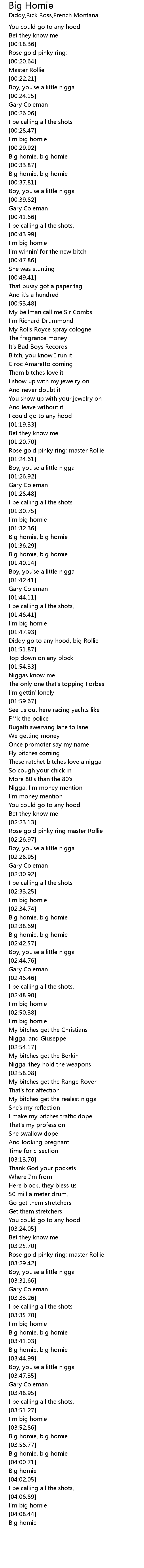 | [01:48.69] | Diddy go to any hood, big Rollie |
