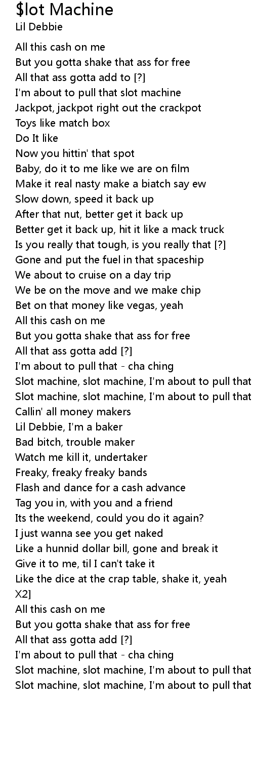 Slot machine, slot machine, I'm about to pull that slot machine |
