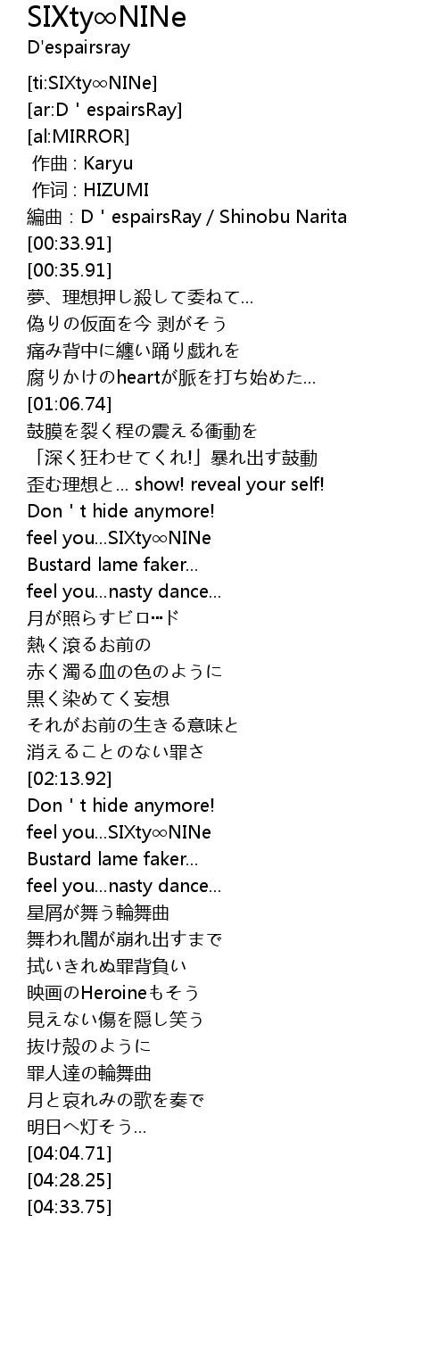 | [00:31.91] | bian qu: D espairsRay Shinobu Narita |