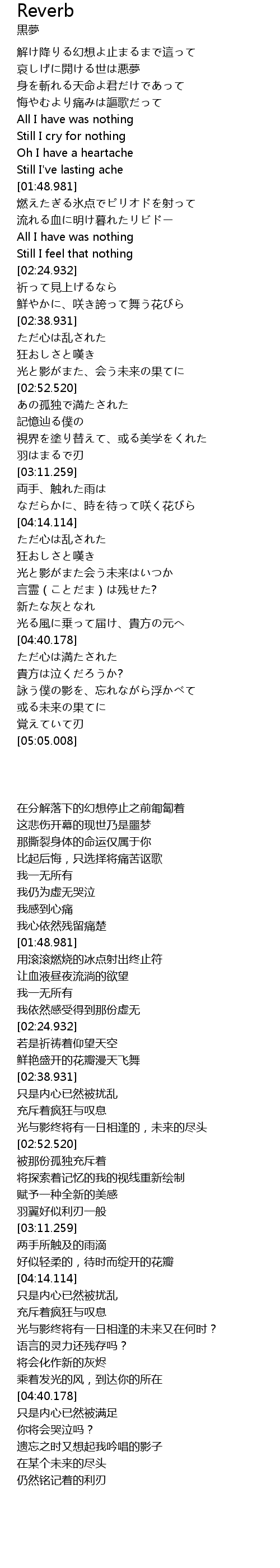 | [00:58.708] | 解け降りる幻想よ止まるまで這って |
